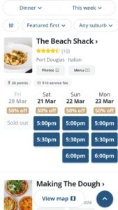 First-table.com allows diners to book the first tables of the night (or lunch) at partner restaurants to receive 50% off. The “catch” is simply dining at off-peak, early times to help restaurants build atmosphere, often for a small booking fee.